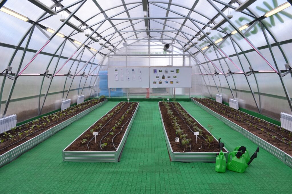 La construction de serres ouvertes toute l’année dans le cadre du projet a déjà commencé dans 20 écoles de Nur-Sultan. Toutes les serres seront constituées d’une solide structure en acier galvanisé et recouvertes de polycarbonate cellulaire. Pour assurer le niveau d’humidité requis, un système d’irrigation goutte à goutte automatique sera installé. Pour maintenir la chaleur, des radiateurs infrarouges sont fournis et, en hiver, un système de chauffage de l’eau économique sera également activé, fonctionnant sur le principe des batteries domestiques et installé le long des lits. L’allumage et l’extinction du chauffage se feront automatiquement grâce au thermostat et aux capteurs de mesure de température.